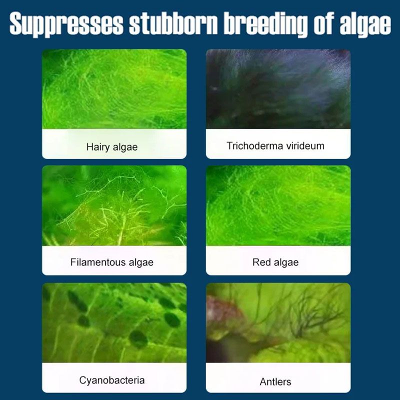 ALGICIDE ÉCOLOGIQUE : L'algicide écologique de notre produit offre un contrôle efficace de la croissance des algues dans votre aquarium. Les algues peuvent être inesthétiques et perturber l'équilibre de votre écosystème aquatique. Cet algicide aide à maintenir la croissance des algues sous contrôle, assurant une eau plus claire et un environnement de réservoir visuellement plus attrayant.