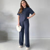 Ensemble décontracté composé d'un haut à col rond et d'un pantalon à cordon de serrage