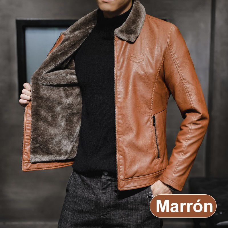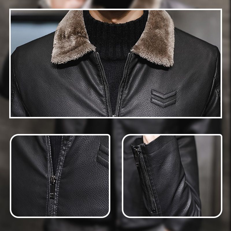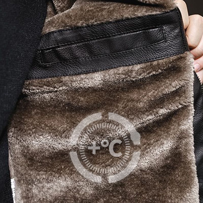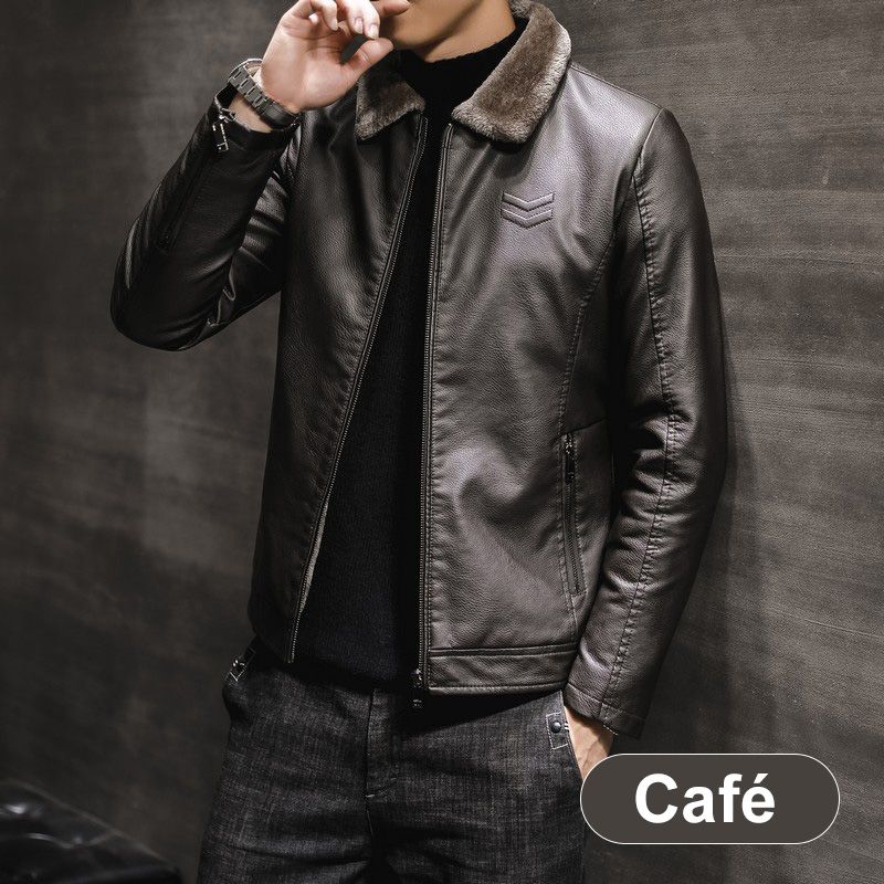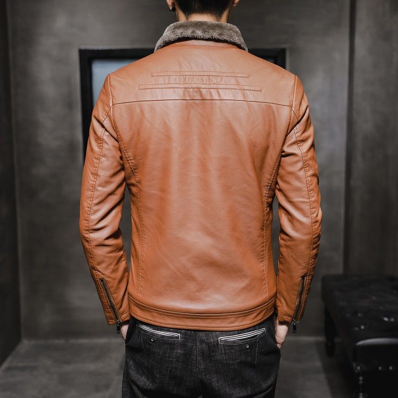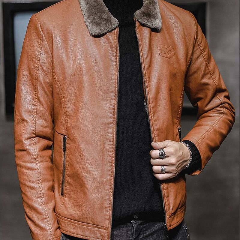 Veste en cuir élégante et chaude doublée de peluche pour hommes