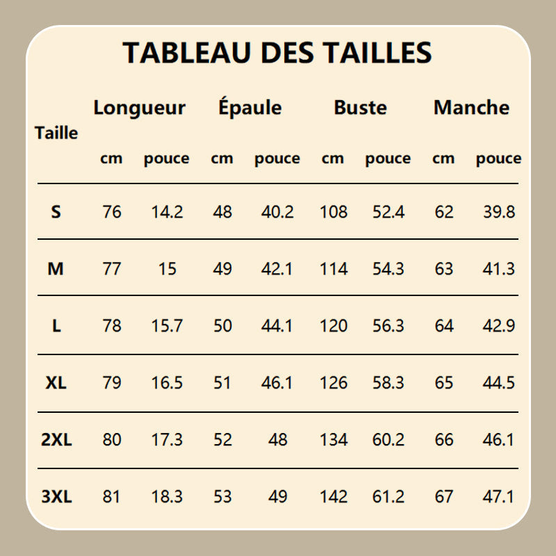 Pour les mesures manuelles, veuillez prévoir une erreur de 1-2 cm.