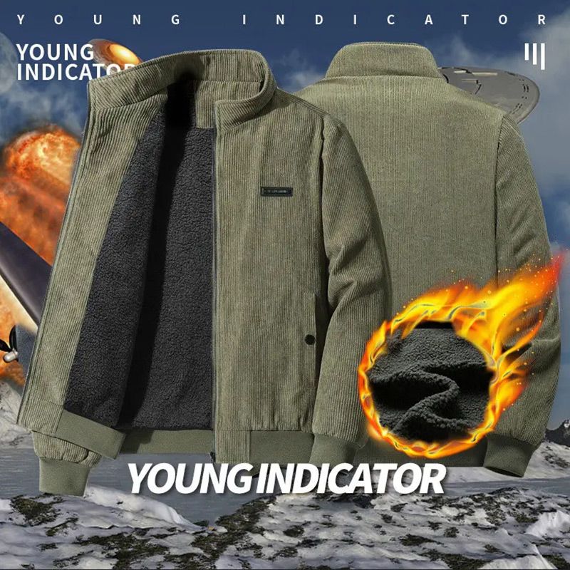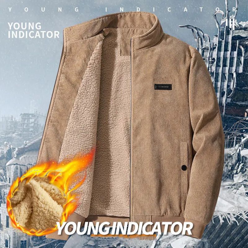 Veste à fermeture éclair en velours côtelé doublé de thermique pour hommes, avec col montant
