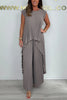 Ensemble composé d'un top midi irrégulier à manches courtes plissées et d'un pantalon à jambe large avec taille élastiquée