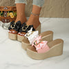Pantoufles à semelles compensées en cuir PU avec nœud papillon