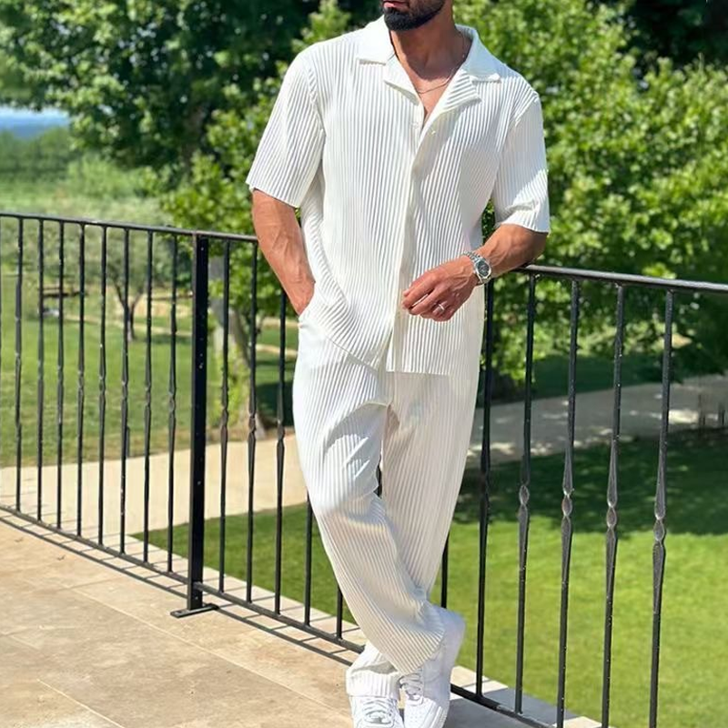 ENSEMBLE ÉLÉGANT TOUT-EN-UN – L'ensemble chemise à boutons, haut et pantalon pour hommes offre un look élégant et coordonné. Conçu pour les styles de vie modernes, l'ensemble élimine la difficulté d'assortir les vêtements, offrant une solution de prêt-à-porter.