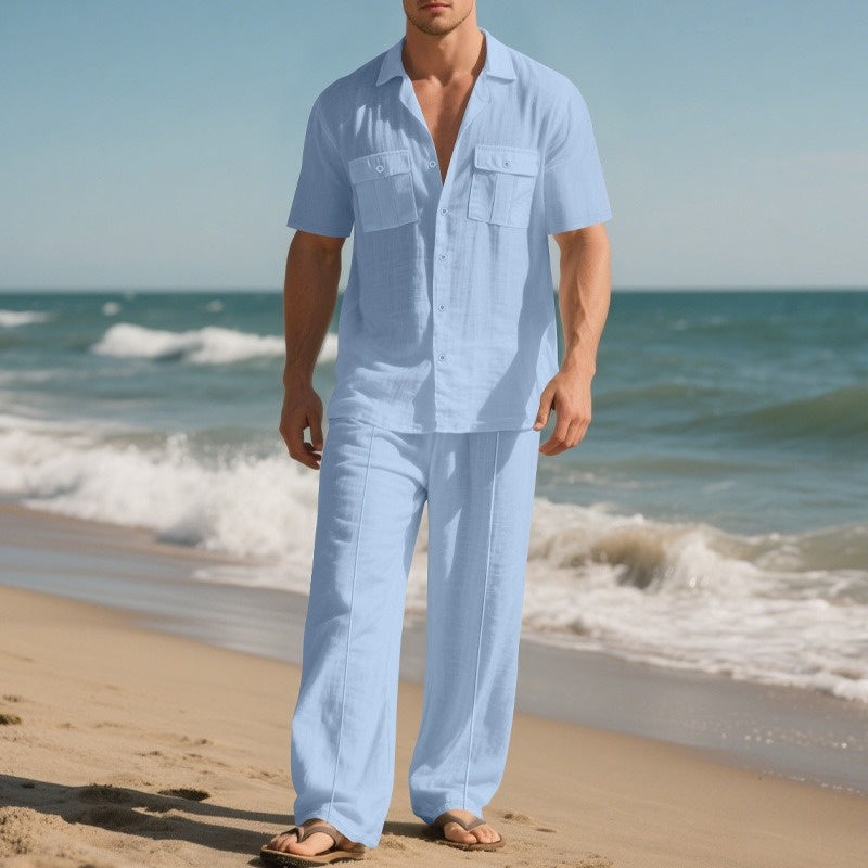 Ensemble 2 pièces chemise boutonnée et pantalon pour hommes