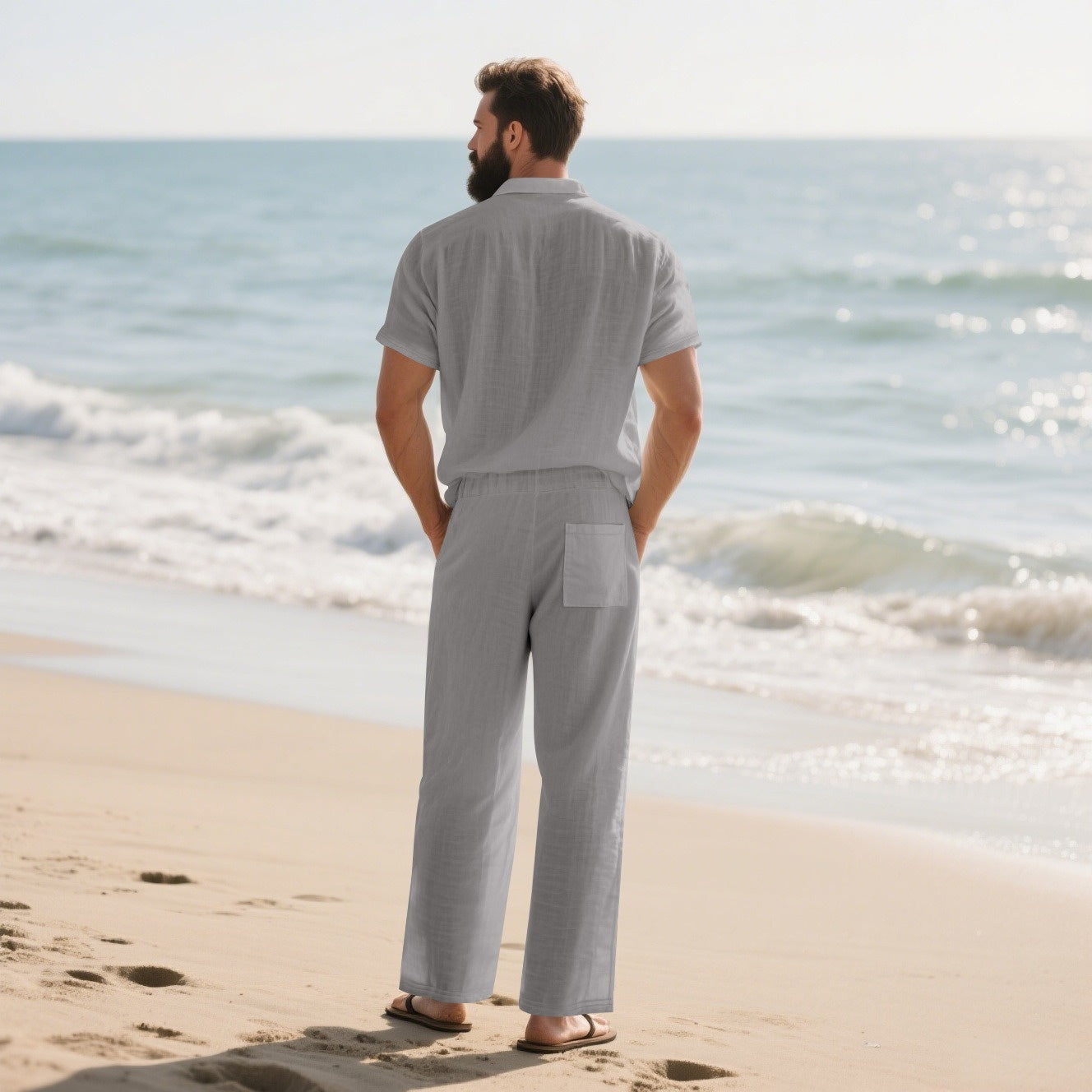 Le paquet comprend : 1* Ensemble 2 pièces chemise boutonnée et pantalon pour hommes