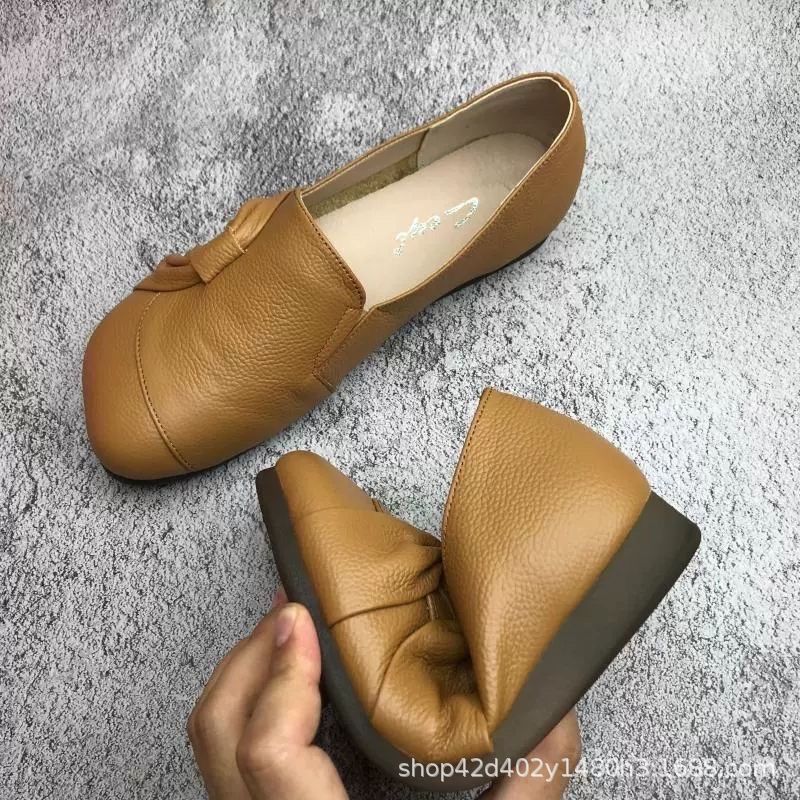 Chaussures antidérapantes à semelle souple en cuir pour femmes