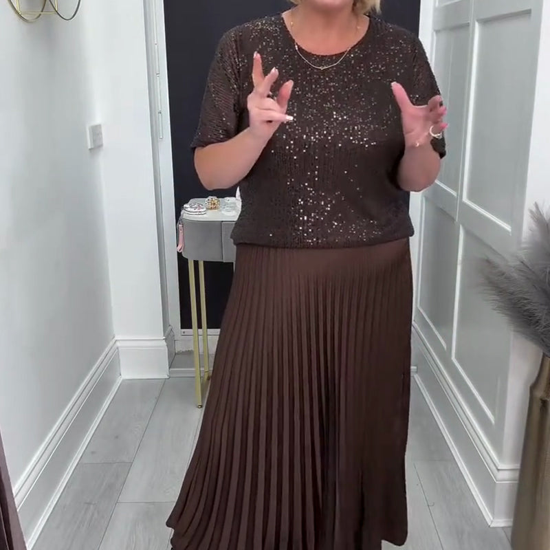 Le paquet comprend : 1 * ensemble haut à paillettes et jupe plissée pour femme