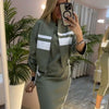 RAYURES VERTICALES SUR LES CÔTÉS – La robe est rehaussée de rayures verticales sur les côtés, qui allongent subtilement la silhouette et créent un look élégant. Ce détail ajoute non seulement un intérêt visuel, mais met également en valeur les lignes naturelles du corps. Le motif à rayures s'harmonise parfaitement avec la veste à blocs de couleur, garantissant ainsi que les deux pièces forment un ensemble cohérent et élégant.