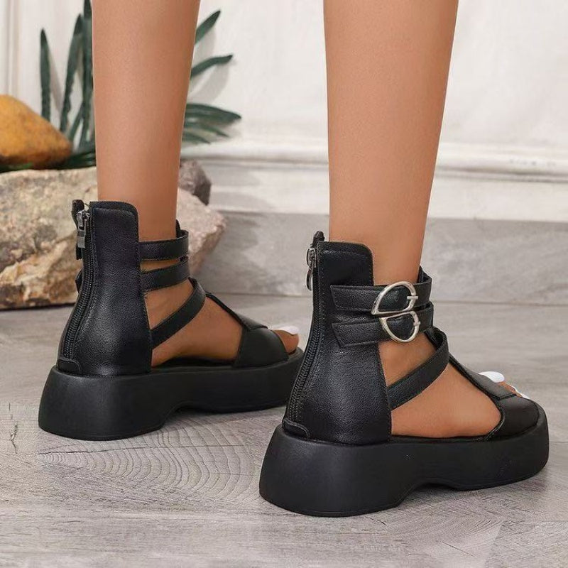 Sandales orthopédiques pour femmes avec plateforme et semelle compensée en cuir souple