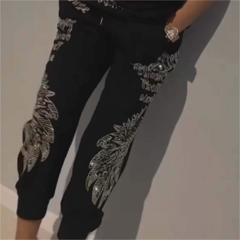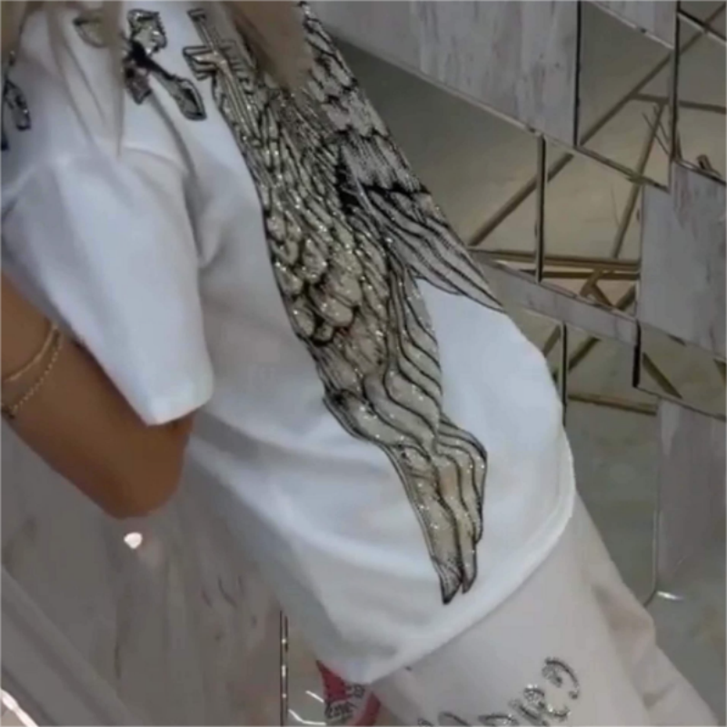 DES AILES DE MODE : Le pantalon de jogging coordonn ? pr?sente un motif d'ailes unique, compl?tant le haut et cr?ant un ensemble 2 pi?ces coh?sif et ? la mode.