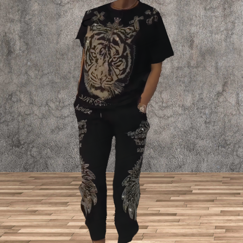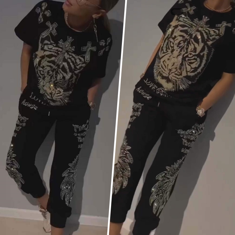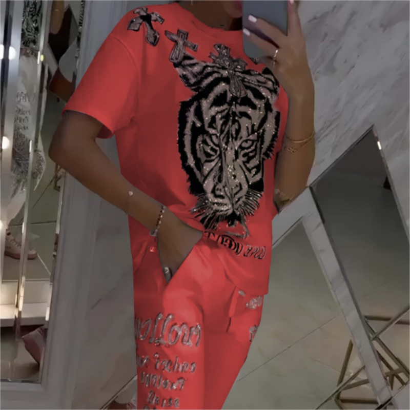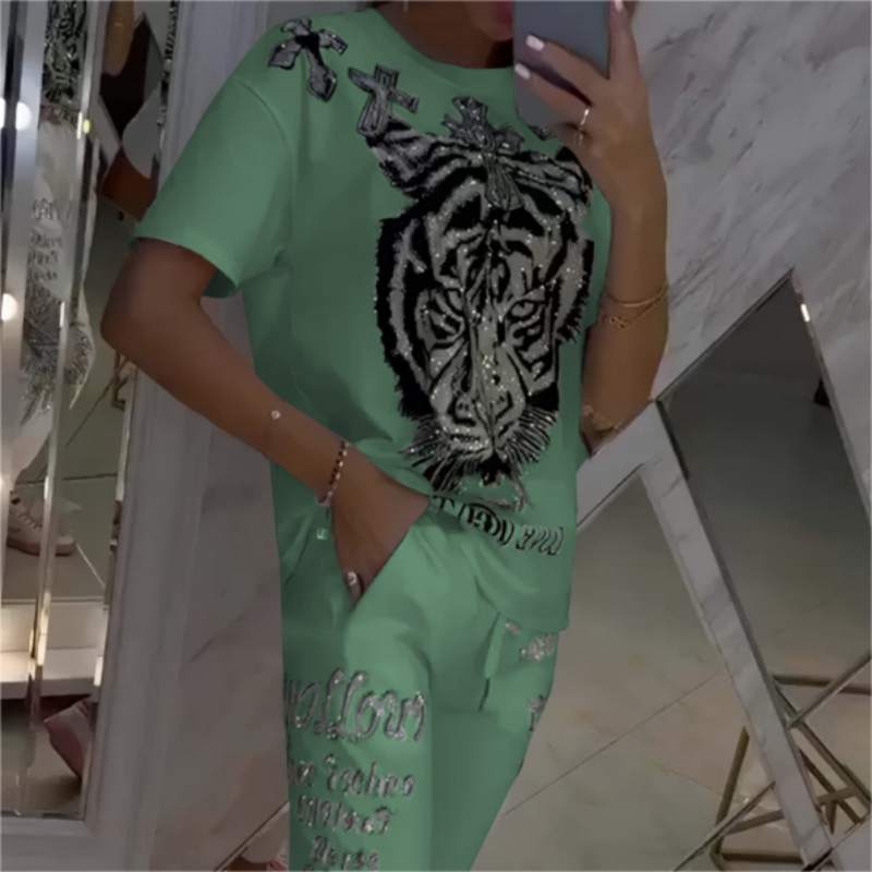 Ensemble 2 pièces tendance pour femmes avec motif chic