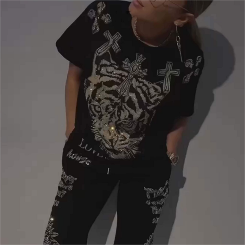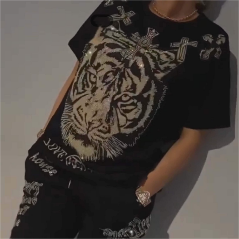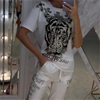 UNIQUE TIGER HEAD PATTERN : Le haut décontracté à col ras du cou et à manches courtes présente un motif de tête de tigre frappant et accrocheur, ajoutant une touche d'espièglerie et de personnalité à votre garde-robe d'été.